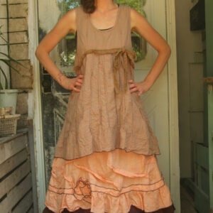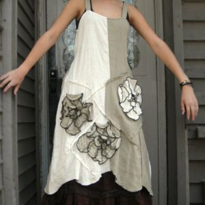 Women’s Retro Cotton and Linen Color Matching Suspender Dress