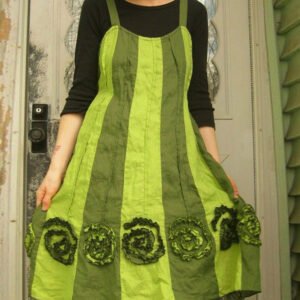 Women’s Retro Cotton and Linen Color Matching Suspender Dress
