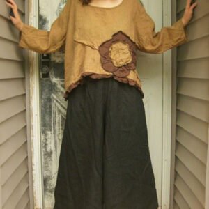 Women’s Vintage Cotton and Linen Long Sleeve Dress