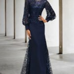 Elegant embroidered sequined long sleeve organza gown